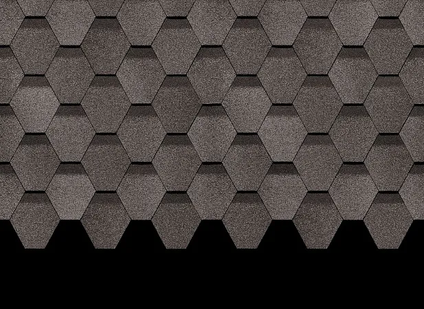 Гибкая черепица Docke PIE PREMIUM коллекция Шеффилд в цвете Шеффилд гармонично сочетает в себе серые оттенки базальтовых гранул, которые оживляют кровлю и придают ей строгость и шарм. Элементы имеют классическую шестигранную форму, что позволяет получить великолепную кровлю строго немецкого стиля.